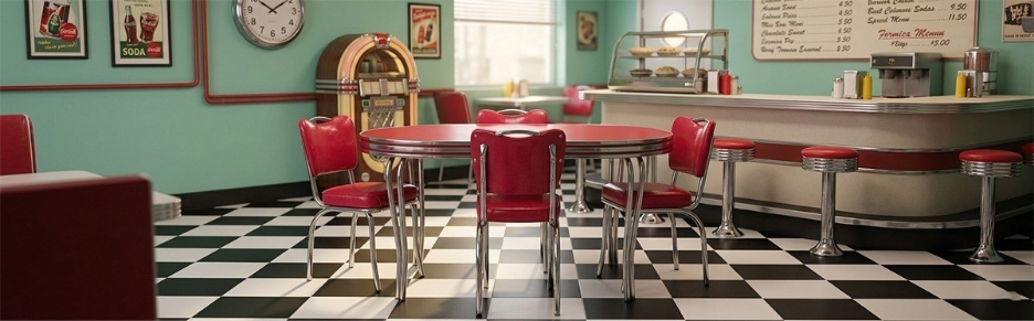 • Gray and Red Retro Dinette Set: A softer mix of tones, perfect if you want balance. It blends retro charm with a slightly modern feel.